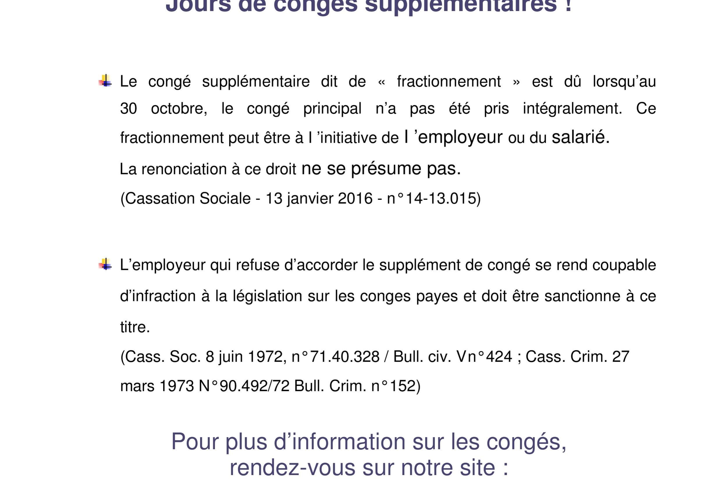 Fév182016Conges_Fractionnement Share this postShare with FacebookShare with TwitterShare with LinkedInShare with Google+Post navigationPreviousPrevious post:Égalité professionnelleNextNext post:Le délégué syndicalArticles similairesLicenciements économiques20 mai 2025Variable d’ajustement?20 mai 2025La force de l’union dans l’adversité8 octobre 2024Nos actions, nos valeurs15 mai 2023Rôle du CSE9 mai 2023Appel à candidature4 mai 2023